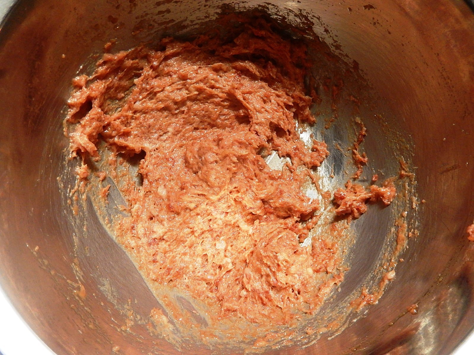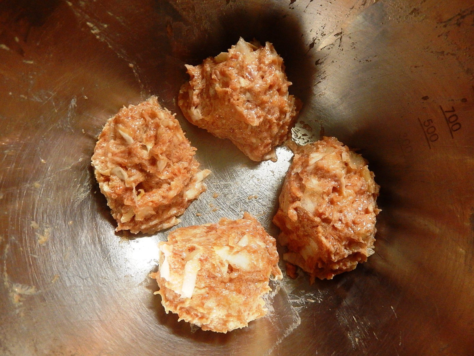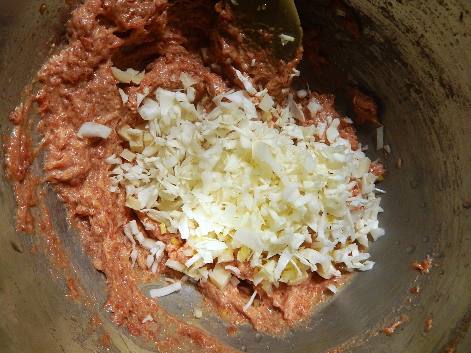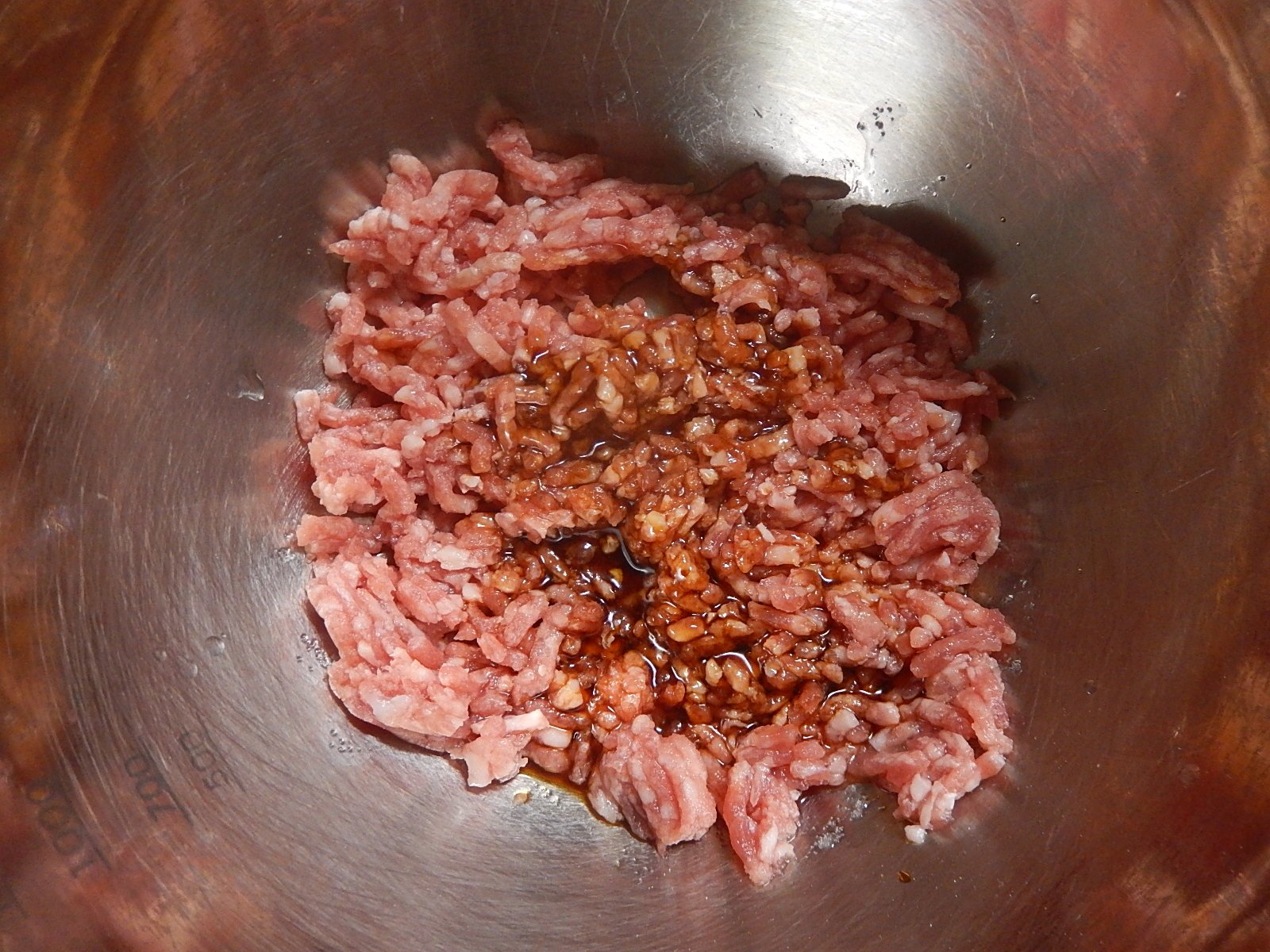 肉だねは、しっかり白くなるまで練ることが最大のコツです。練ることで多めに加えた水分もたねにしっかり取り込まれて、蒸しあがりにはそれらがスープになります。