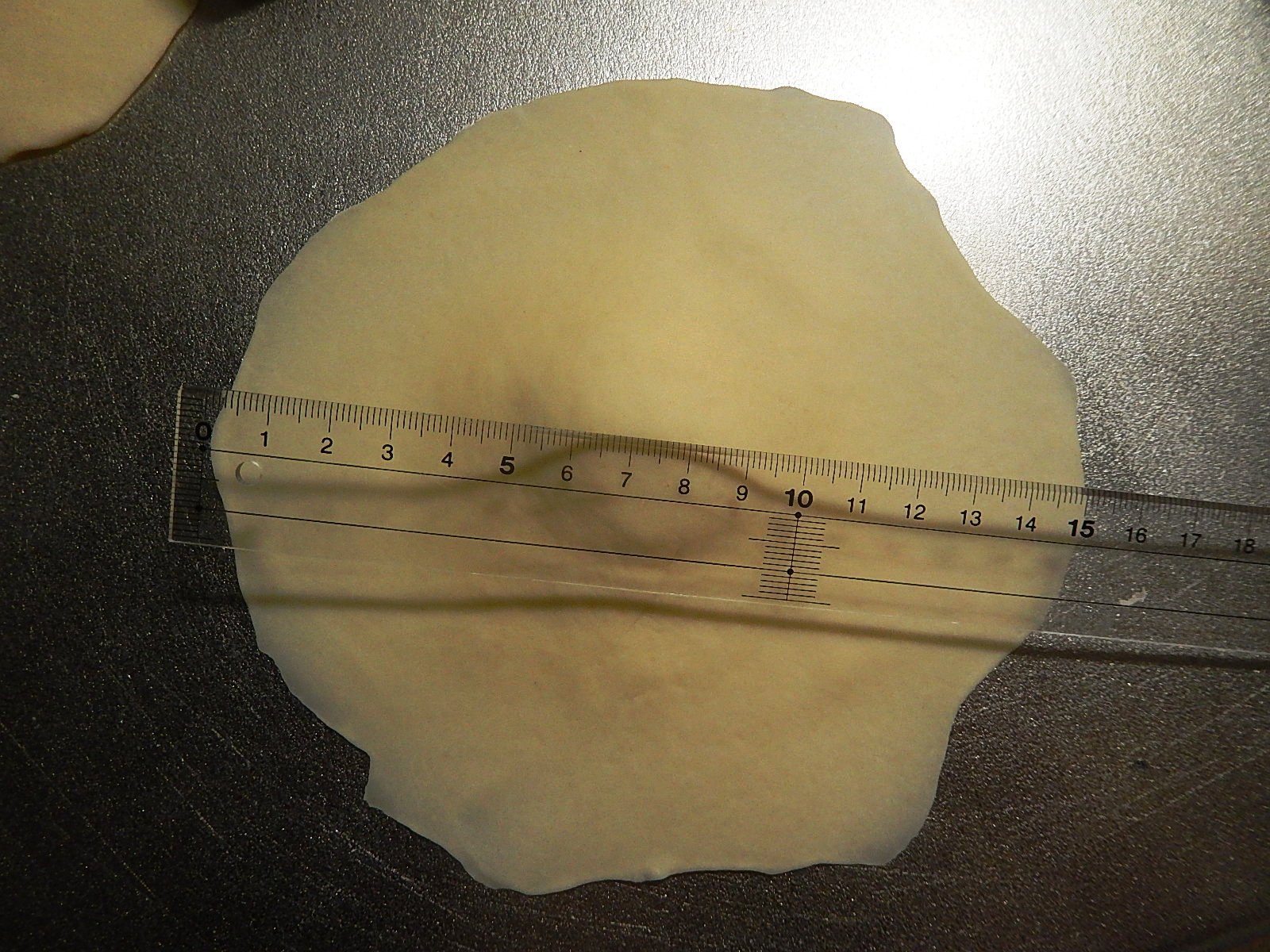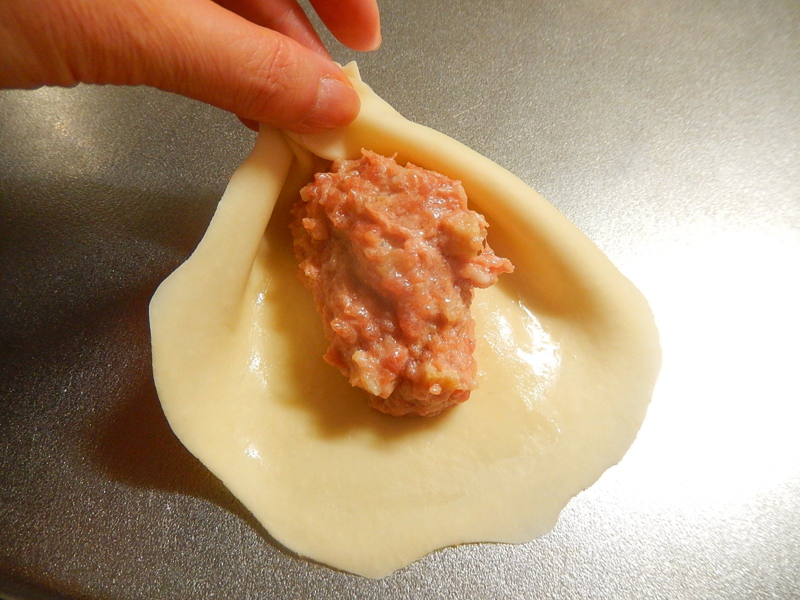 生地を伸ばすときの直径は最低15cmはほしいです。小さく作ると肉だねを包みきれません。中の肉だねを多くする場合は直径も大きくします。