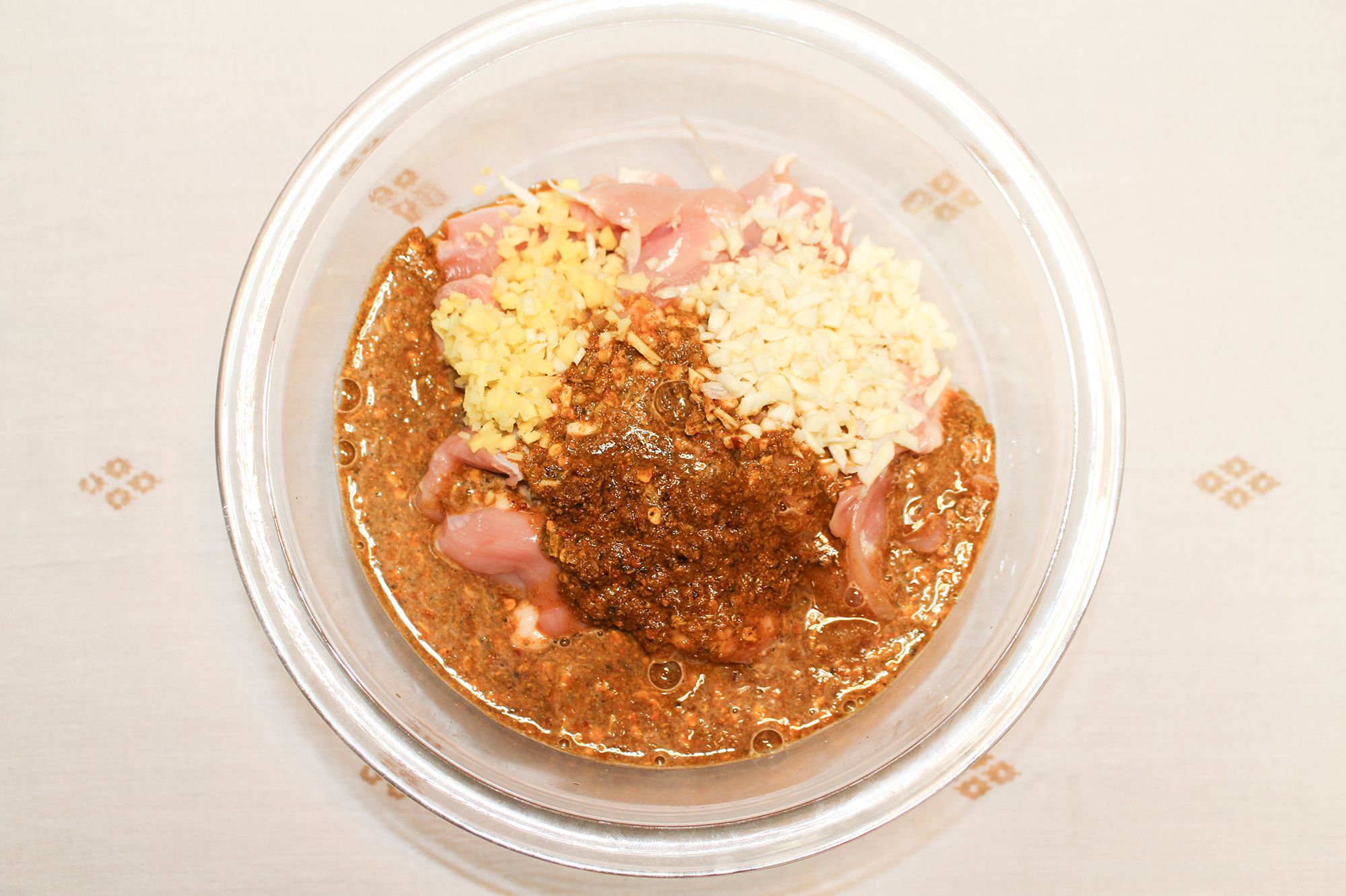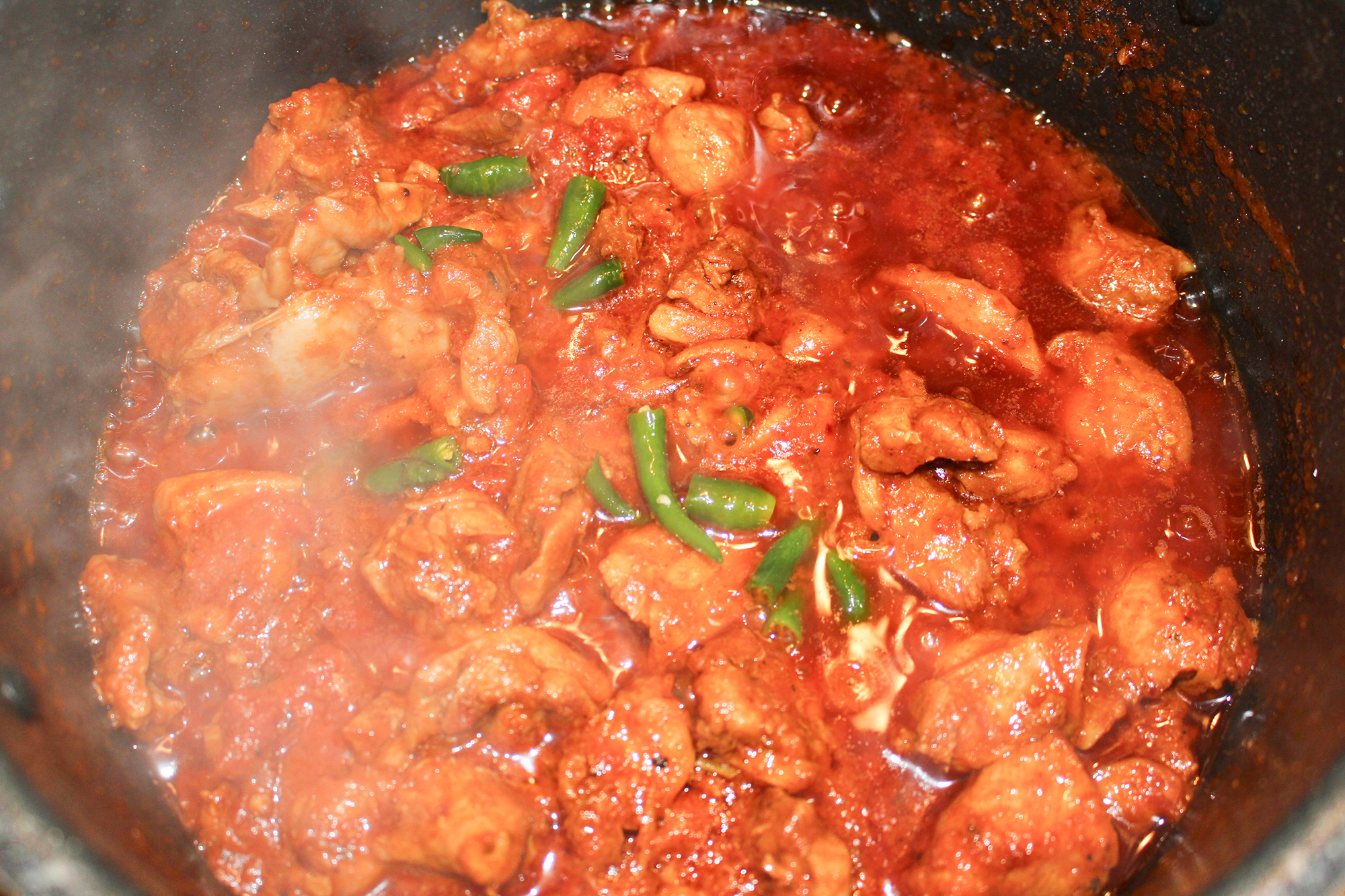 私にとって、カラヒの命はトマト!フレッシュなトマトをたっぷり使いたかったのですが、最近はお値段が高く、今回はしぶしぶトマト缶で作ってみました。それでも十分に美味しく仕上がります。