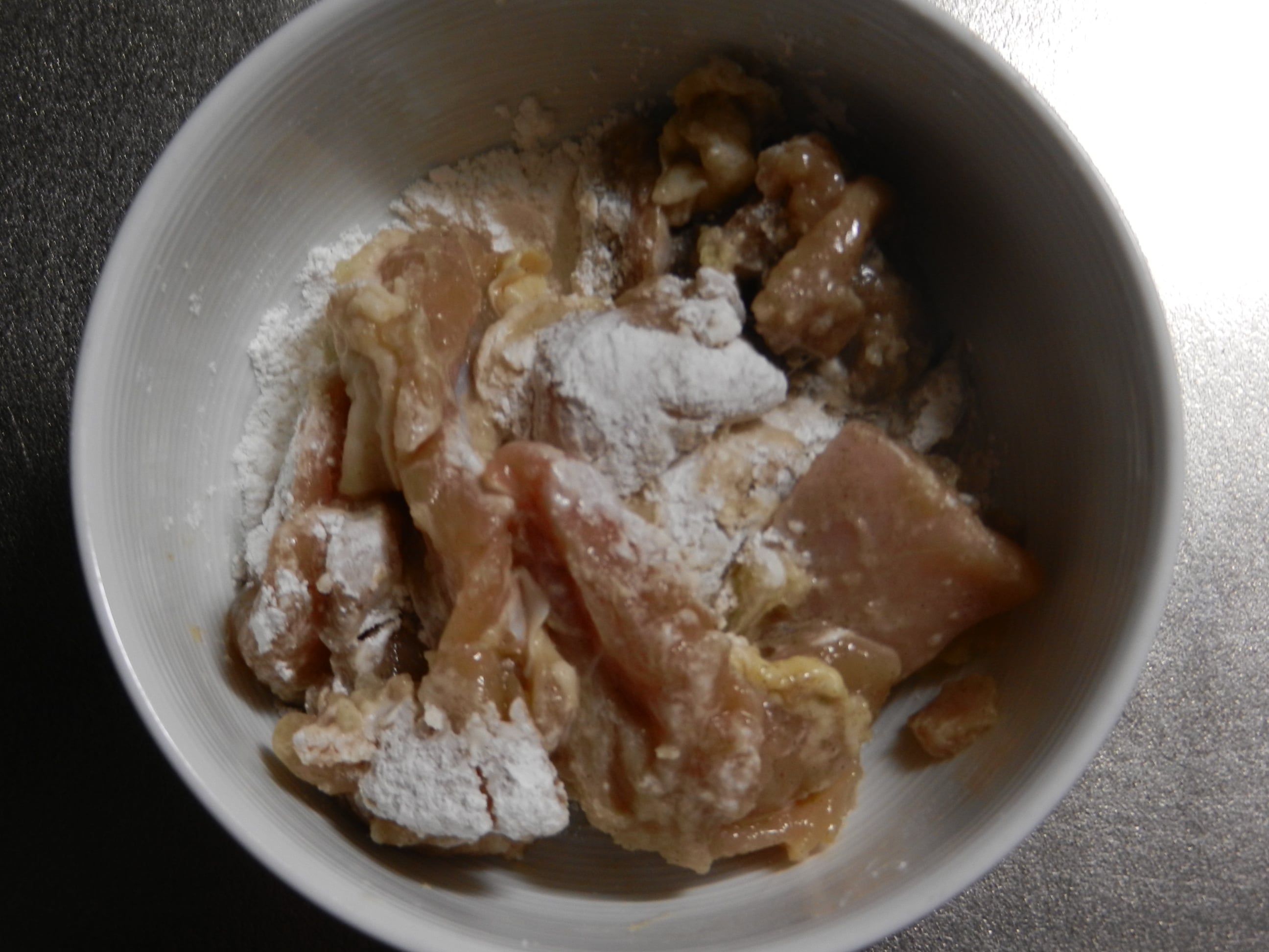 2の工程で衣の粉をまぶすのには、ビニール袋に入れるよりも器に移した方がやりやすかったです。