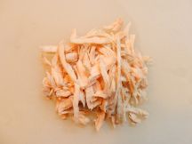 日本で手に入る生の唐辛子は青いものか、赤唐辛子を乾燥させた鷹の爪が一般的だと思います。そこで、鶏胸肉をゆでる鍋に赤唐辛子も入れて、戻して使ってみました。