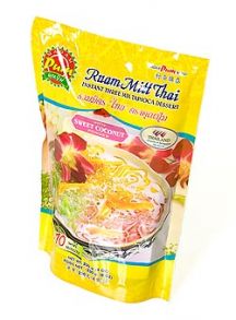 カラフルなうどんの様なタピオカが、特製ココナッツミルクシロップの中で泳いでいます。味は、そうですねー・・・食べてからのお楽しみと言う事で、是非、お試しを!!