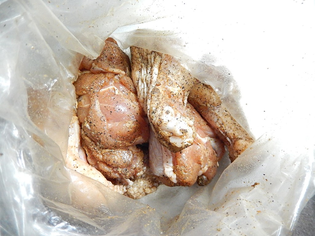 手間はスパイスの計量だけで、あとは漬けて放置するだけ、並べて焼くだけ、の簡単料理です。ビニール袋を使いますので後片付けも楽、焼いている間に他の料理も作れます。