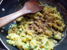 じゃが芋は、全部潰しきるか、半分素材を残して潰すか